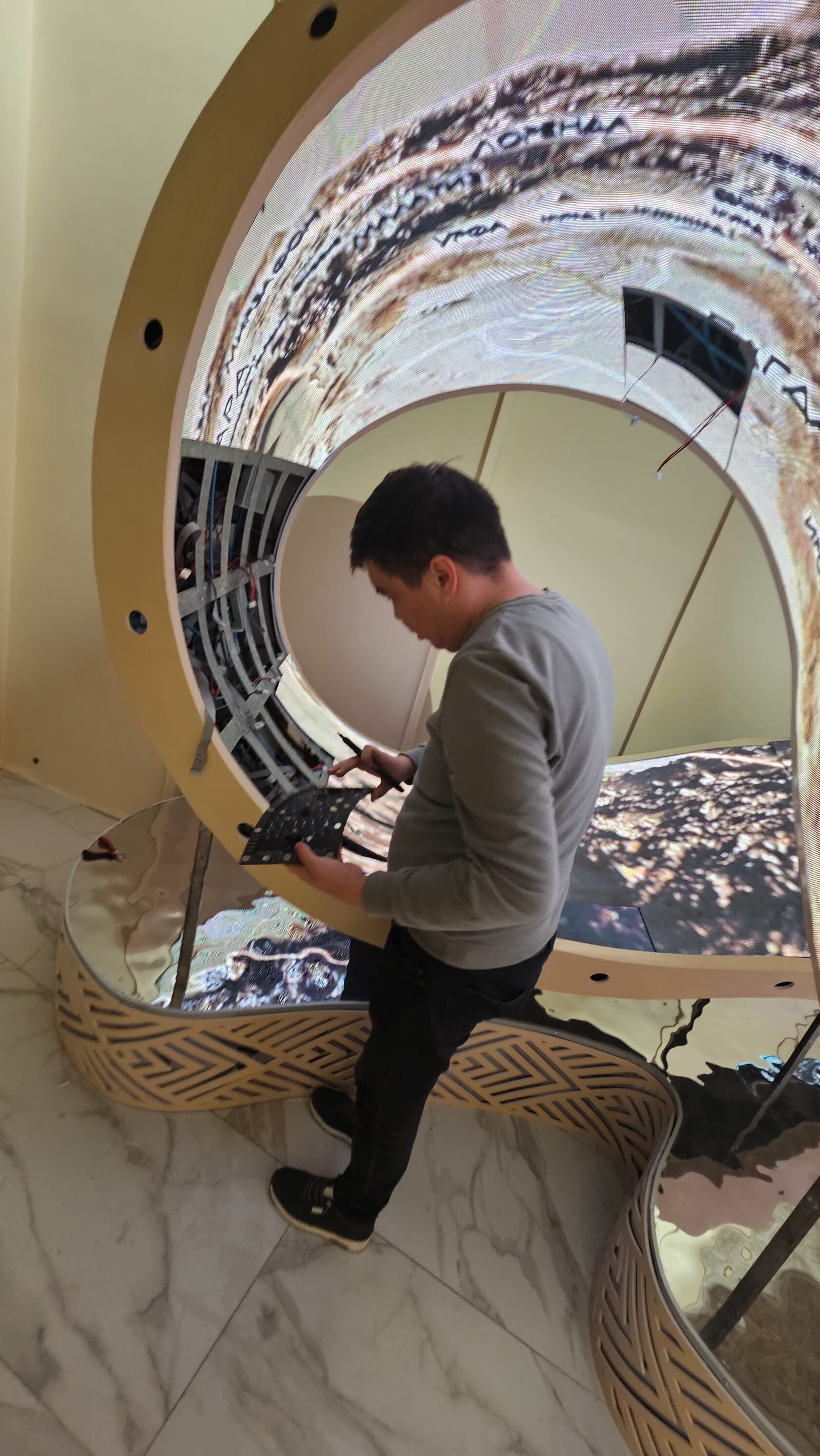 Демонтаж - монтаж неправильно смонтированных LED-экранов, установленных на нестандартной поверхности;